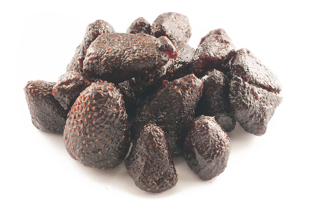 These strawberries are unique amongst typical dried fruits in that there is no added sugar. Many dried fruits have regular old processed sugar added to supplement the natural sugars. With these strawberries however, concentrated apple and strawberry juices are added to enhance the natural sweetness.