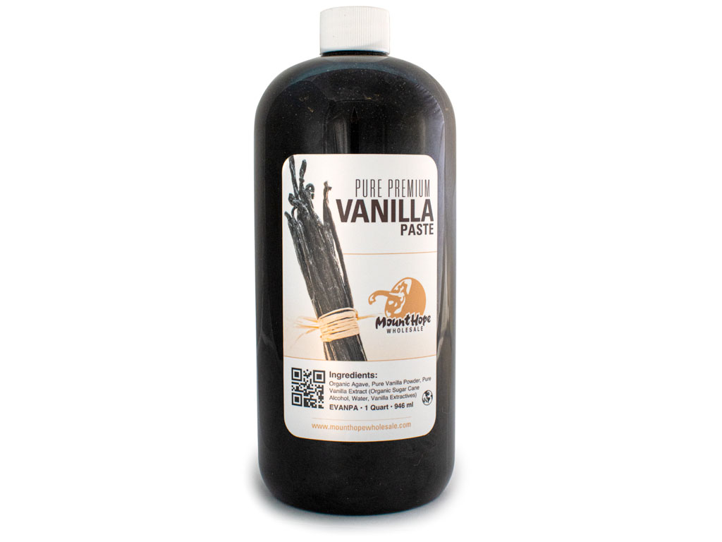 Mount Hope has a dark, rich Vanilla Paste made from pure vanilla beans infused into organic agave syrup. These richly flavored vanilla beans are scraped into the paste, providing the black flecks that indicate natural vanilla bean flavor.