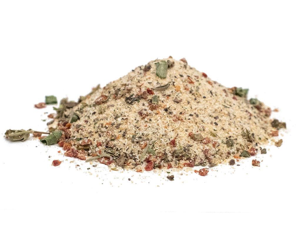 Mount Hope’s proprietary Roasted Garlic Pepper Blend is a spice mix made from Garlic, Sea Salt, Spices including (thyme), Red and Green Bell Pepper, Onion, Citric Acid, Sugar, Maple Flavoring and Chives. The garlic is roasted until it becomes soft and caramelized, creating a sweet and savory flavor that pairs well with the red and green pepper. Here are some characteristics of this spice blend:
